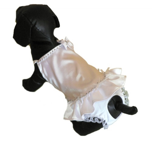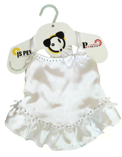 Krásné svatební šaty pro vaši princeznu. Jedná se o velice vypracované svatební šaty z jemného saténu. Po obvodu zdobeno mašličkami Svatební šaty dodáváme v běžných velikostech S, M, L. V případě přání šijeme šaty také na zakázku, dle individuální velikosti Vašeho pejska.