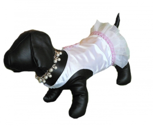 Svatební šaty dodáváme v běžných velikostech S, M, L. V případě přání šijeme šaty také na zakázku, dle individuální velikosti Vašeho pejska.